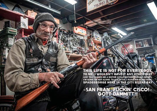 I was immediately drawn to the Chopper movement, captivated by the way people from all walks of life were creating their own bikes with an ultra-radical style that pared machines down to their simplest and most necessary components. I found it fascinating and wanted to capture it through my lens. Today, I continue to follow these bikers and their adventures across the globe, documenting their journeys as a photojournalist.